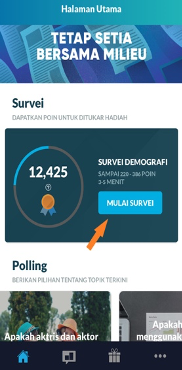 Langkah 1: Ikuti survei yang muncul di layar utama aplikasi Milieu Survei Anda