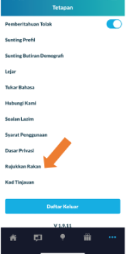 Di mana saya boleh mendapatkan Kod Rujukan saya? Milieu WeCare Admin Diubah suai pada: Thu, 27 Aug, 2020 at 11:35 AM Tekan ikon 3 titik di bar navigasi dan pilih "Rujukkan Rakan".
